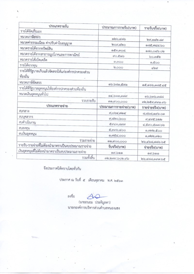 ประกาศองค์การบริหารส่วนตำบลหนองแซง (เรื่องรายงานการรับจ่ายเงินประจำปีงบประมาณ พ.ศ. 2563)